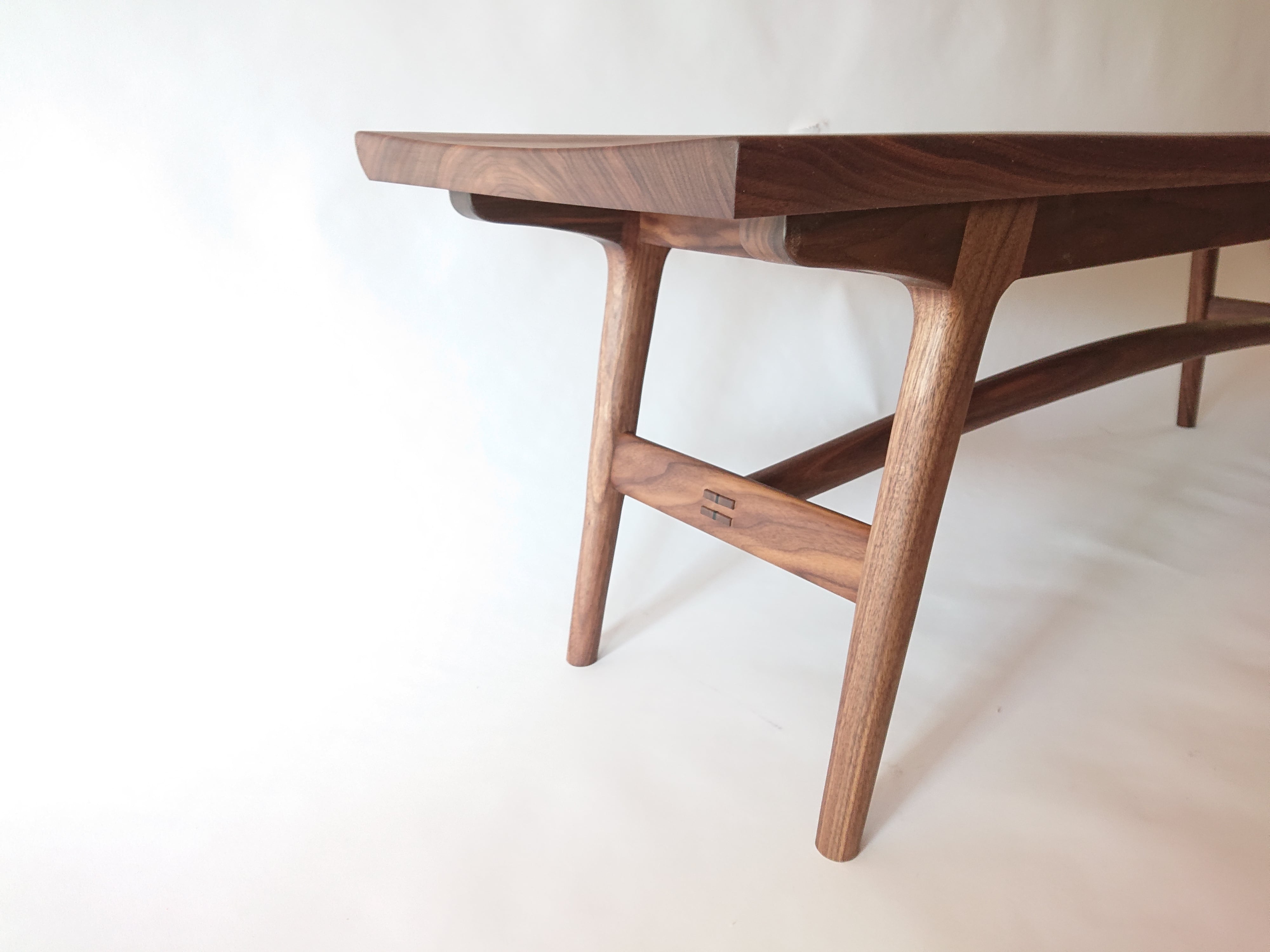世界三大銘木の一つで艶出し加工で美しく仕上がります。木材の多くは日に当たると色が濃くなる傾向にありますが、ウォールナットは明るく(赤茶色に)なってきます。