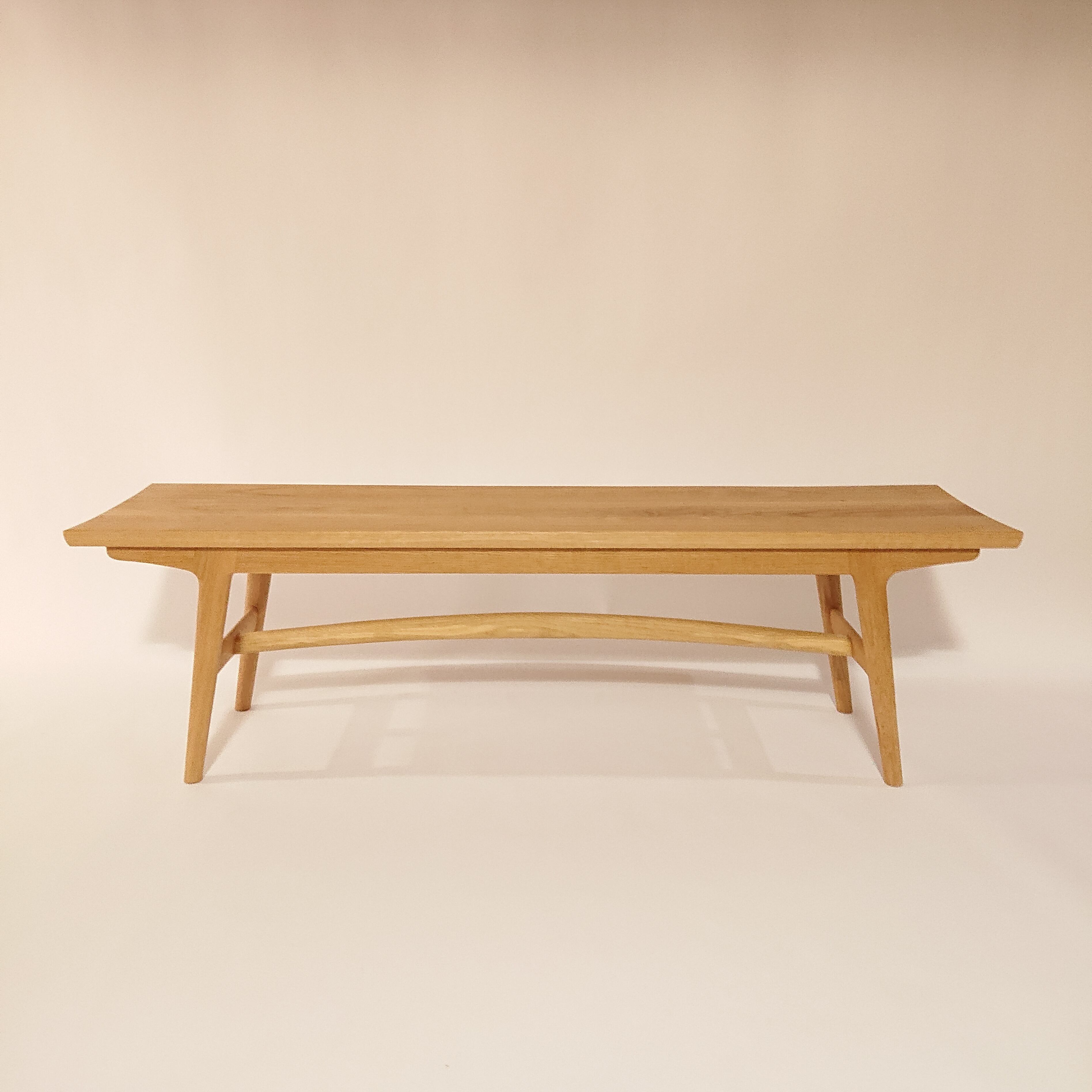 ベンチ、座面が座った時にピッタリくるよう彫り込んであります。